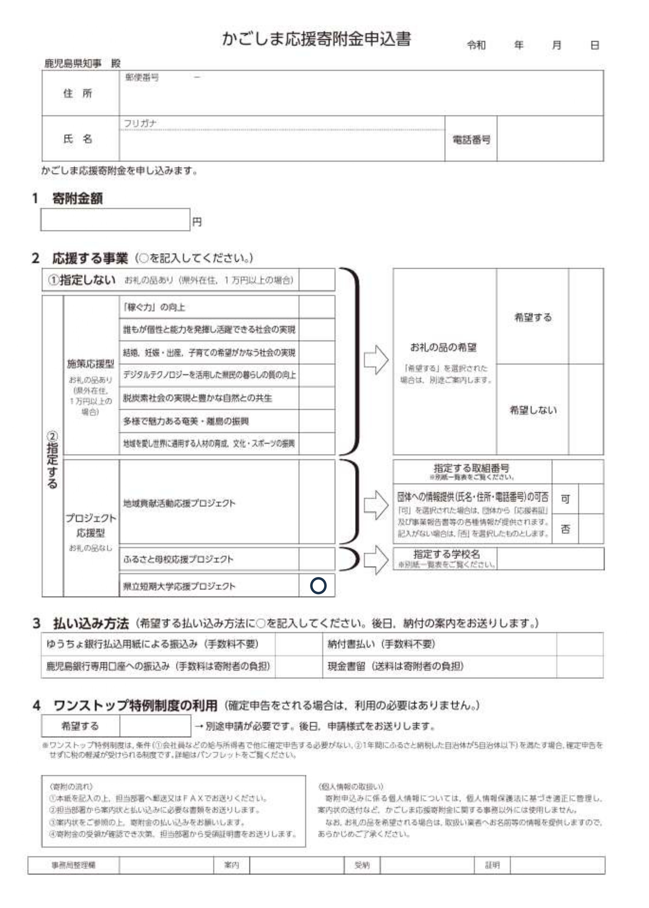 かごしま応援寄附金申込書はこちら(PDF)