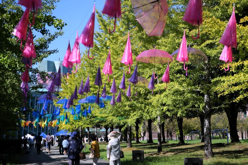 20日はすっかり晴れ、飾った雨傘をたたんだ東門からたくさんの方が来てくれました。大学祭の名物(?)となった出店は行列ができるほど。学生と来場者の楽しい語らいをあちこちで見ることができ、いつもの大学祭の活気がキャンパス内にあふれていました。