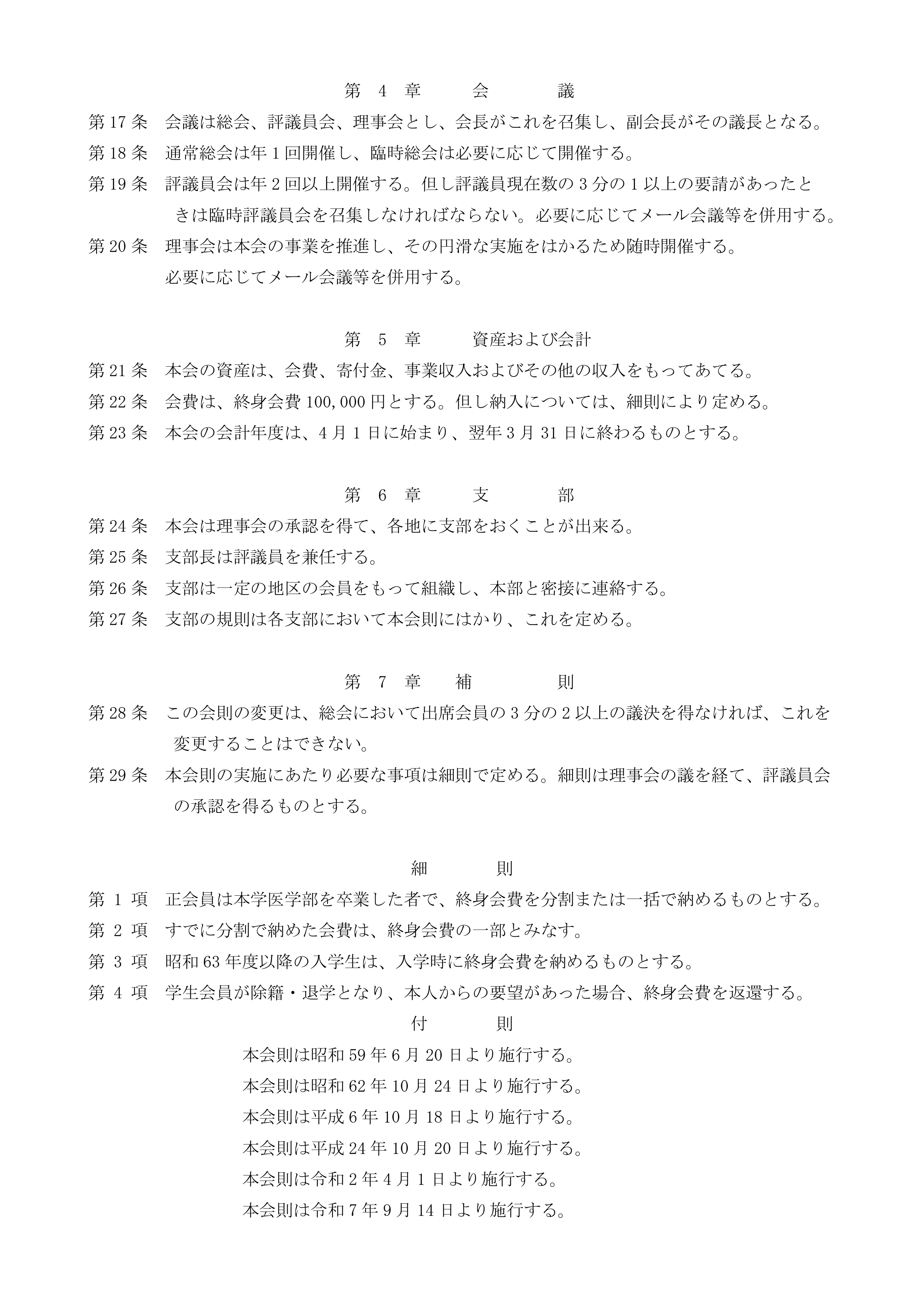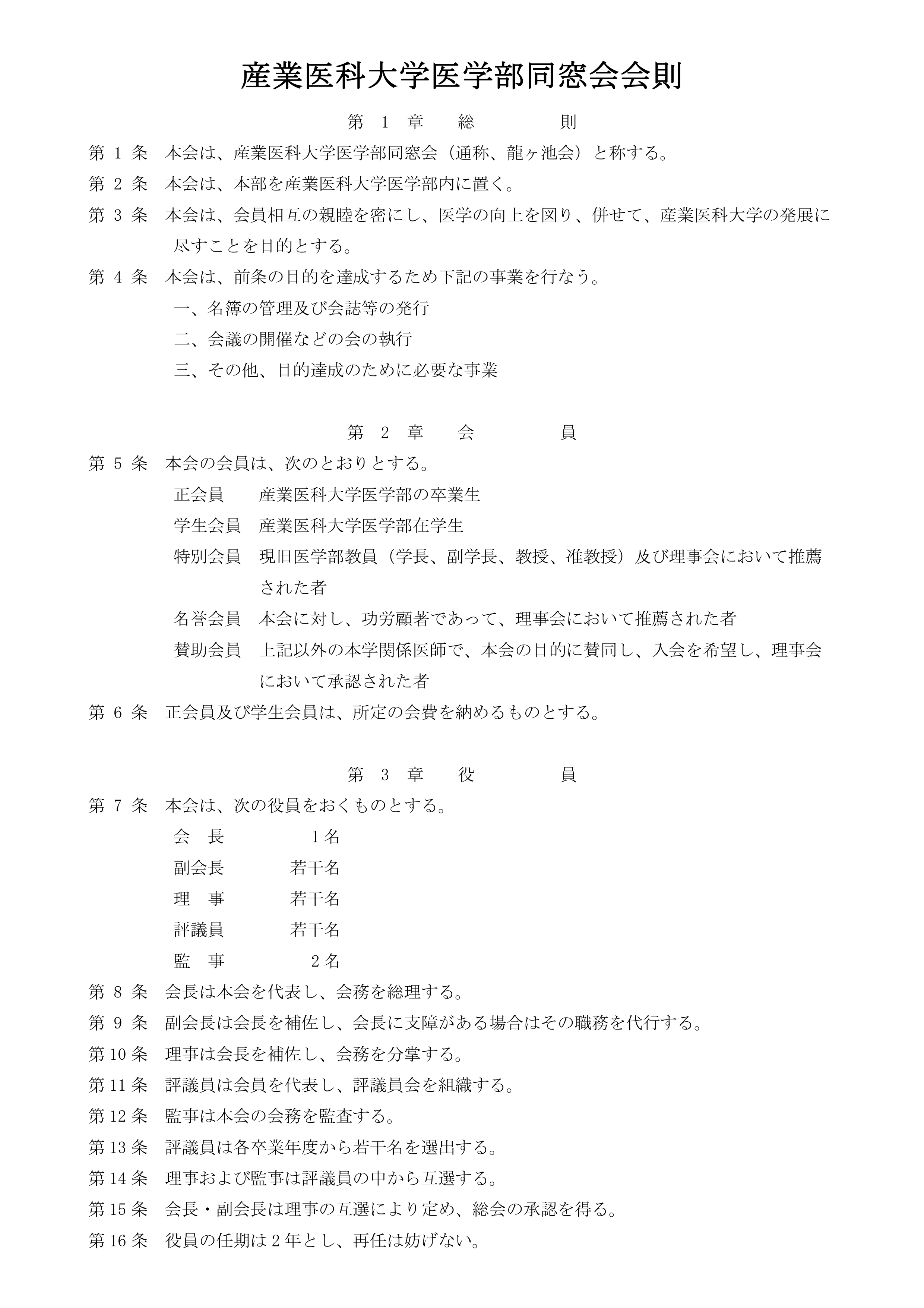産業医科大学医学部同窓会 龍ヶ池会 規約・会則