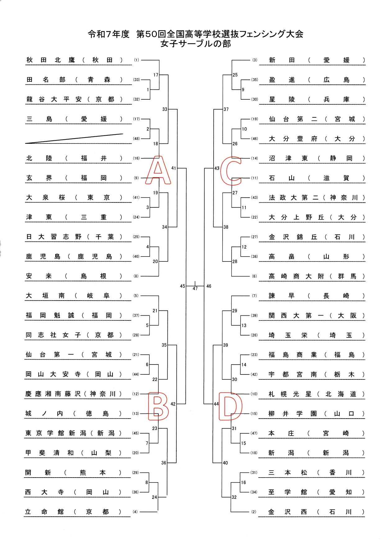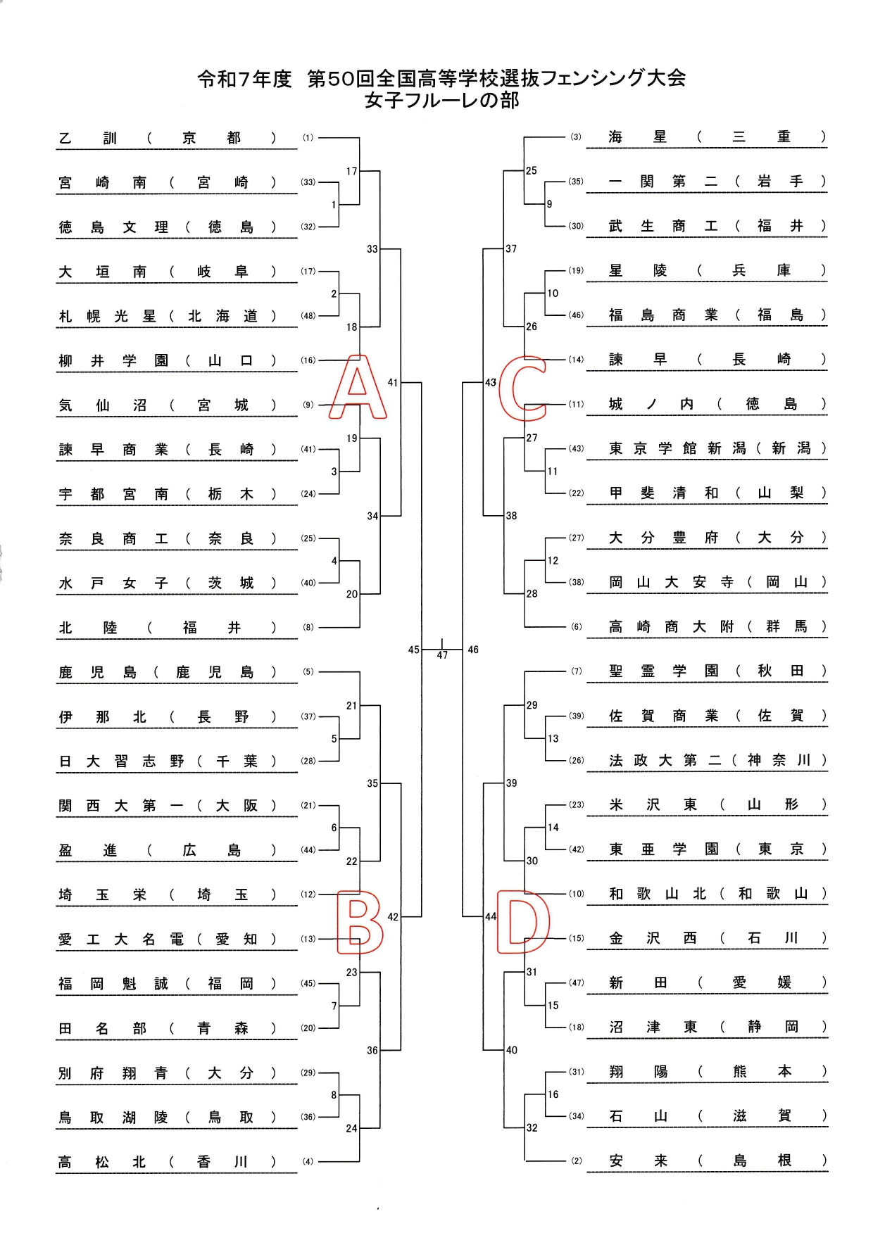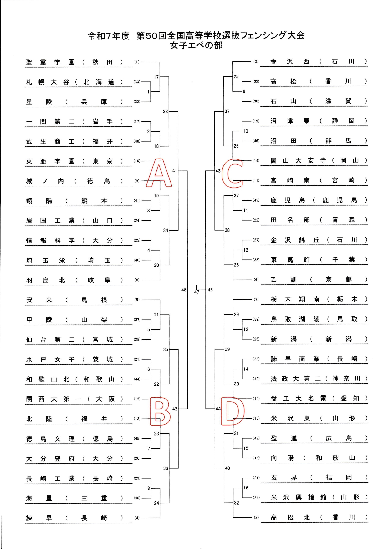 長崎県島原市「島原復興アリーナ」で3月24日(火)~26日(木)まで開催される第50回全国高等学校選抜フェンシング記念大会の組み合わせが決定しましたのでお知らせします。 選抜大会は、各種目すべて団体戦のみです。 岩国工業は、男子はエペ、フルーレ、サーブルのずべて出場。 女子は、エペに出場します。 組合せは以下の通りです。 皆さま、応援よろしくお願いします。