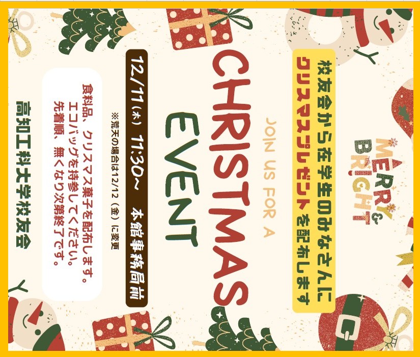 12月11日(木)、校友会が企画したクリスマスイベントを永国寺キャンパスと香美キャンパスで同時に開催しました。